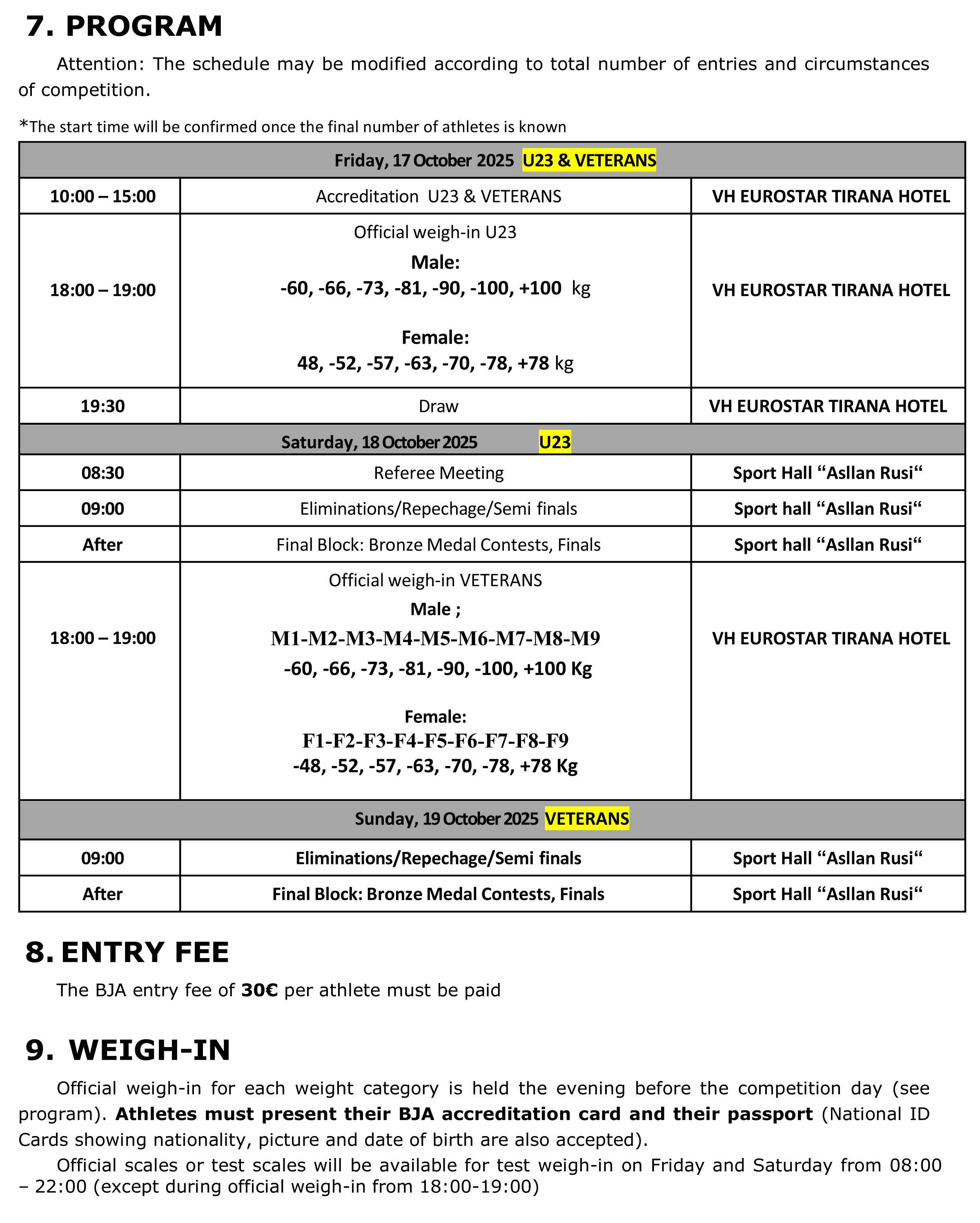 Balkan Championships U23 & Veterans Tirana / ALBANIA 2025 October 18 / 19